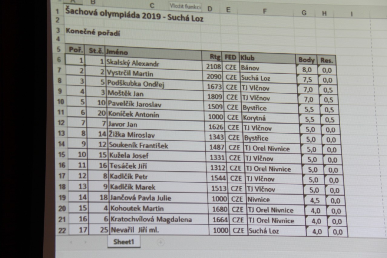 Výsledky - OH Východní Slovácko - šachový turnaj 2019